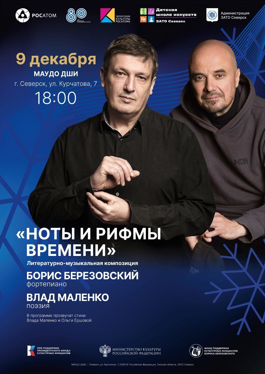 9 декабря состоится концерт с участием Маэстро Бориса Березовского и поэта Влада Маленко для учащихся и преподавателей школы.